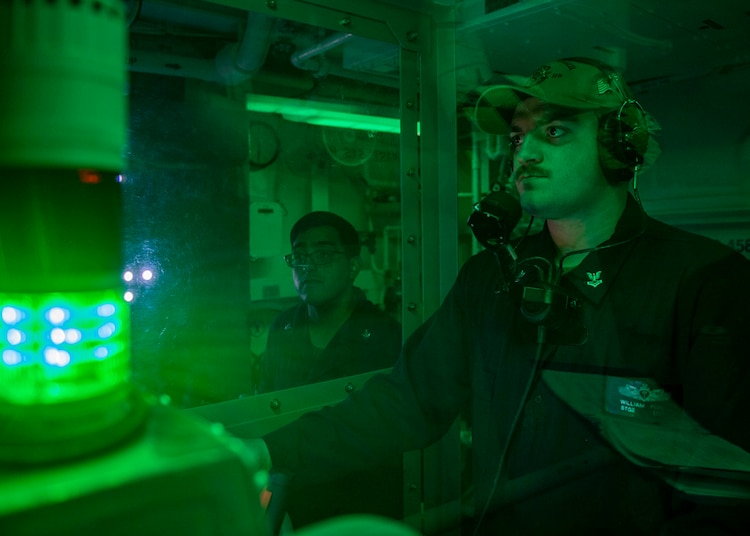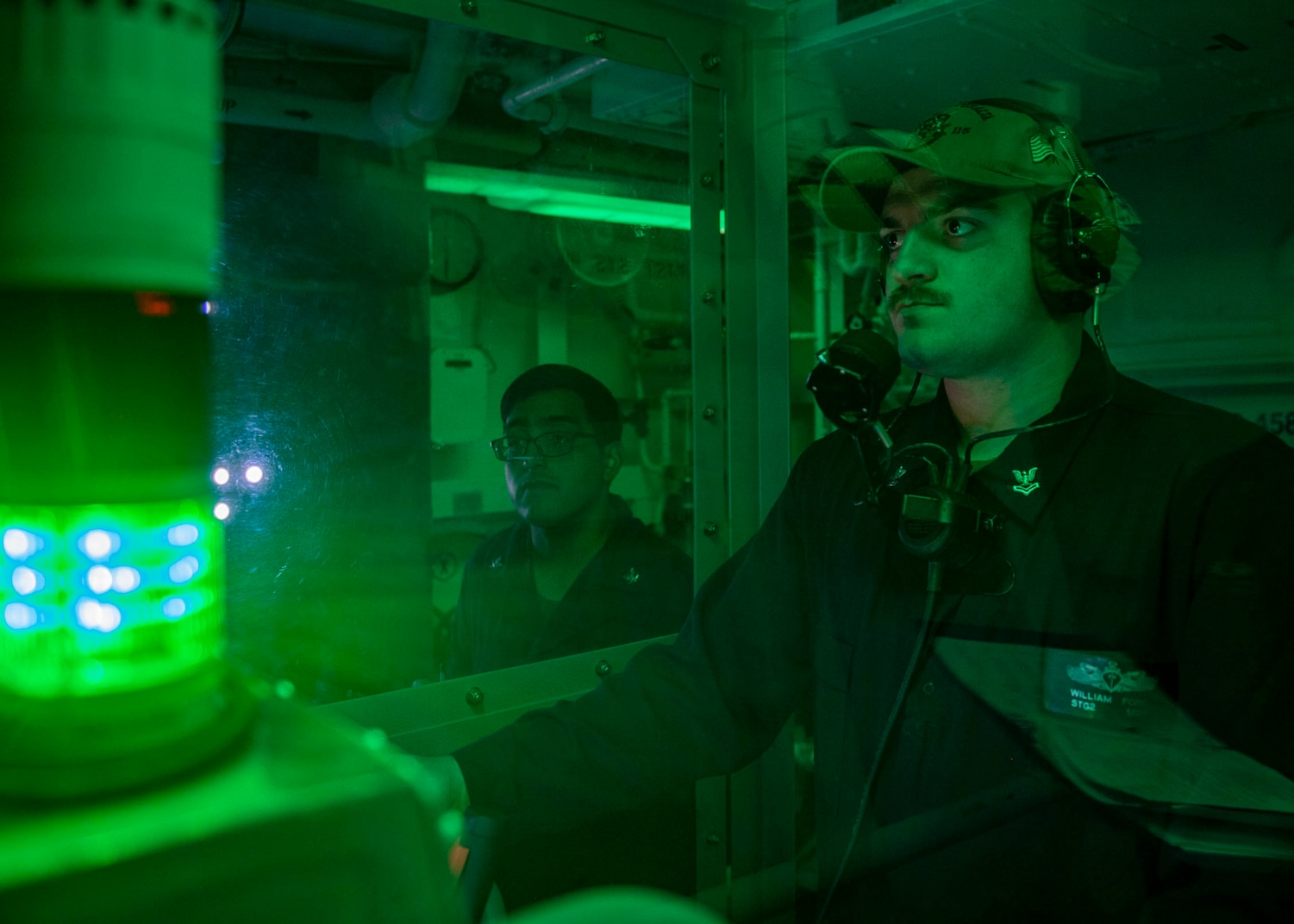 TASMAN SEA (July 5, 2021) Sonar Technician 2nd Class William Ford, from Mobile, Ala., operates the multi-function towed array wench aboard the Arleigh Burke-class guided-missile destroyer USS Rafael Peralta (DDG 115). Rafael Peralta is assigned to Commander, Task Force 71/Destroyer Squadron (DESRON) 15, the Navy's largest forward-deployed DESRON and U.S. 7th Fleet's principal surface force. (U.S. Navy photo by Mass Communication Specialist 3rd Class Daniel Serianni)