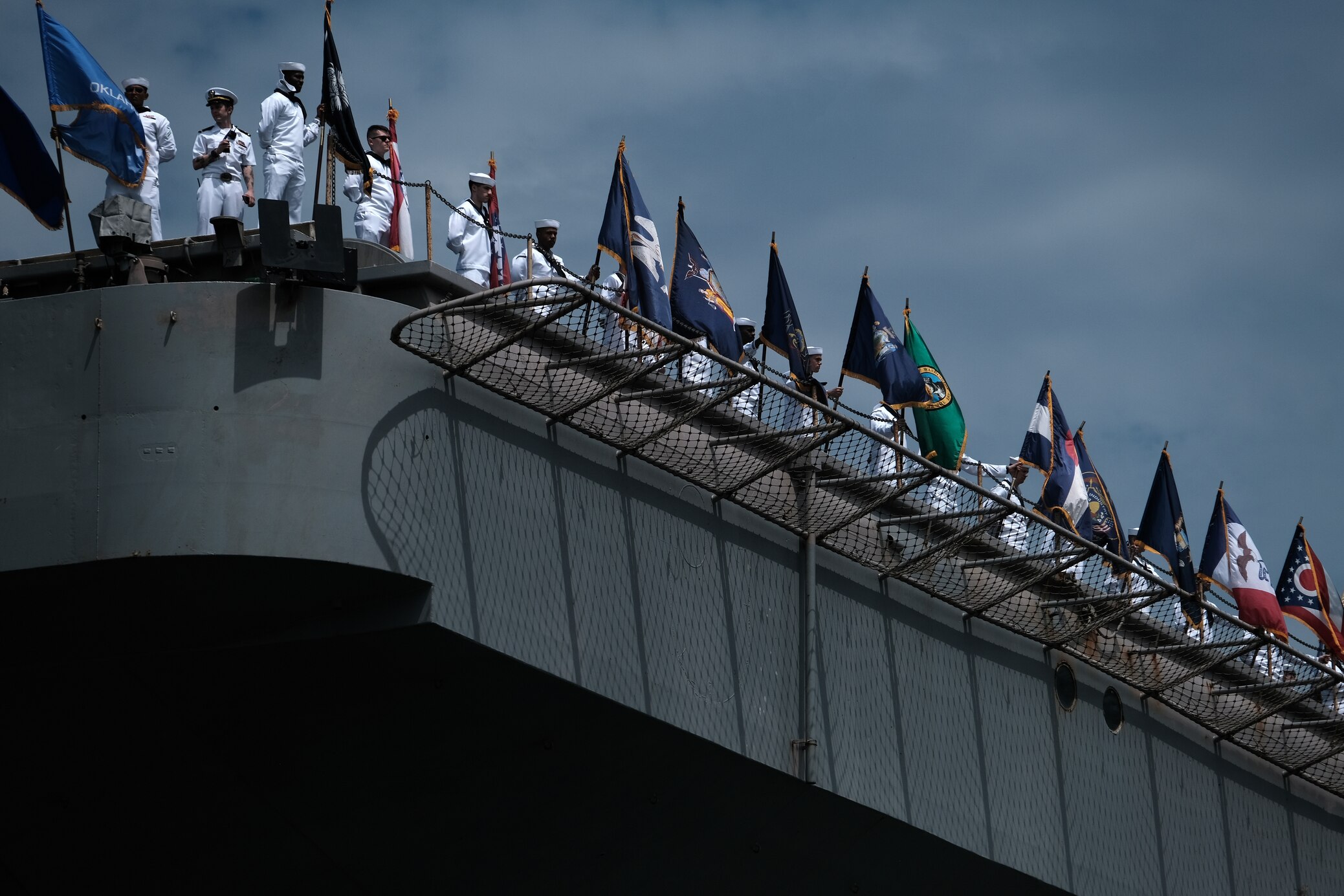 NORFOLK, Va. (July 18, 2021) – Sailors man the rails as the Nimitz-class aircraft carrier USS Dwight D. Eisenhower (CVN 69) returns to Naval Station Norfolk, July 18. Eisenhower returned to homeport after a regularly scheduled deployment in support of maritime security operations and theater security cooperation efforts in U.S. 5th and 6th Fleet. (U.S. Navy Photo by Mass Communication Specialist 1st Class Joshua D. Sheppard)