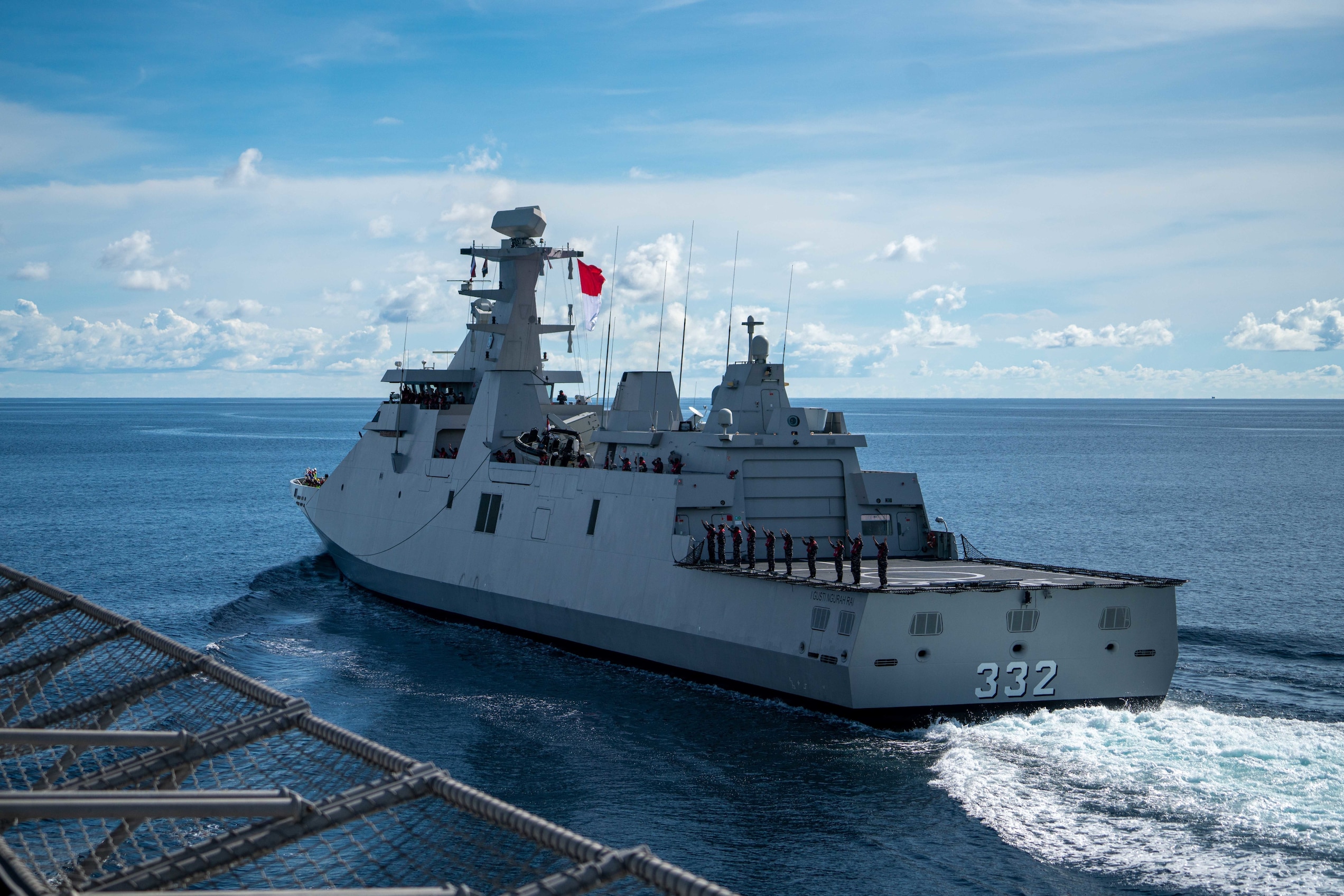 JAVA SEA (Nov. 9, 2021) The Tentera Nasional Indonesia - Angkatan Laut (TNI-AL) Martadinata-class frigate KRI I Gusti Ngurah Rai (332) comes alongside the Independence-variant littoral combat ship USS Jackson (LCS 6) during Cooperation Afloat and Readiness and Training (CARAT) Indonesia 2021. In its 27th year, the CARAT series is comprised of multinational exercises, designed to enhance U.S. and partner navies' abilities to operate together in response to traditional and non-traditional maritime security challenges in the Indo-Pacific region. (U.S. Navy photo by Mass Communication Specialist 3rd Class Andrew Langholf)