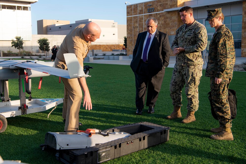 SAN DIEGO (Nov. 8, 2021) Secretary of the Navy Carlos Del Toro, center, meets with Sailors assigned to Naval Special Warfare (NSW) units and discusses unmanned systems during a visit to the San Diego area. During the visit, Del Toro spent time with NSW personnel to discuss ongoing digital transformation and innovation efforts, integrating NSW assets with the Fleet, and assessing and selecting leaders with character, cognitive and leadership attributes. Naval Special Warfare is the nation's premier maritime special operations force, uniquely positioned to extend the fleet's reach and deliver all-domain options for naval and joint force commanders. (U.S. Navy Photo by Mass Communication Specialist 2nd Class Keypher Strombeck)