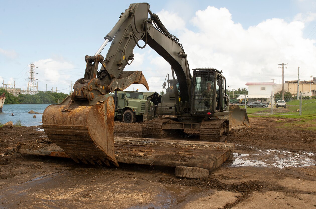 SANTA RITA, Guam (Nov. 10, 2021) Seabees assigned to Naval Mobile Construction Battalion (NMCB) 1 Detachment Guam provide civil engineering support to Navy Mobile Diving and Salvage Unit (MDSU) 1 at the Guam Harbor of Refuge. (NMCB) 1 Detachment Guam is forward-deployed to execute construction, humanitarian assistance, and theater security cooperation in the U.S. 7th Fleet areas of operation. (U.S. Navy photo by Mass Communication Specialist 2nd Class Sean P. Rinner)