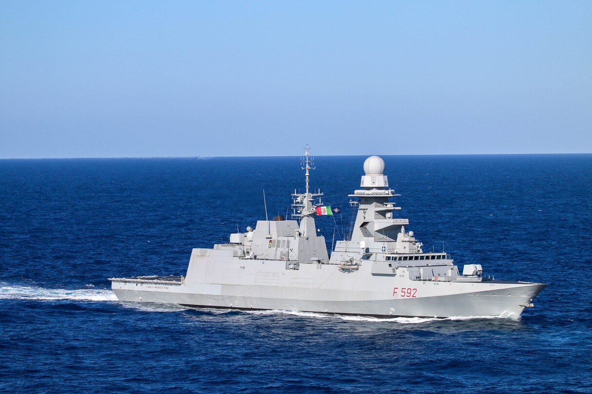 MEDITERRANEAN SEA (Jan. 2, 2022) The Italian navy Carlo Bergamini-class frigate Carlo Margottini (F-592) transits the Mediterranean Sea during maneuvering operations with units from U.S. 6th Fleet�s Forward Deployed Naval Forces-Europe and the Harry S. Truman Carrier Strike Group, Jan. 2, 2022. The Harry S. Truman Carrier Strike Group is on a scheduled deployment in the U.S. 6th Fleet area of operations in support of naval operations to maintain maritime security, and defend U.S., allied and partner interest in Europe and Africa. (U.S. Navy photo by Mass Communication Specialist 3rd Class Theoplis Stewart II)