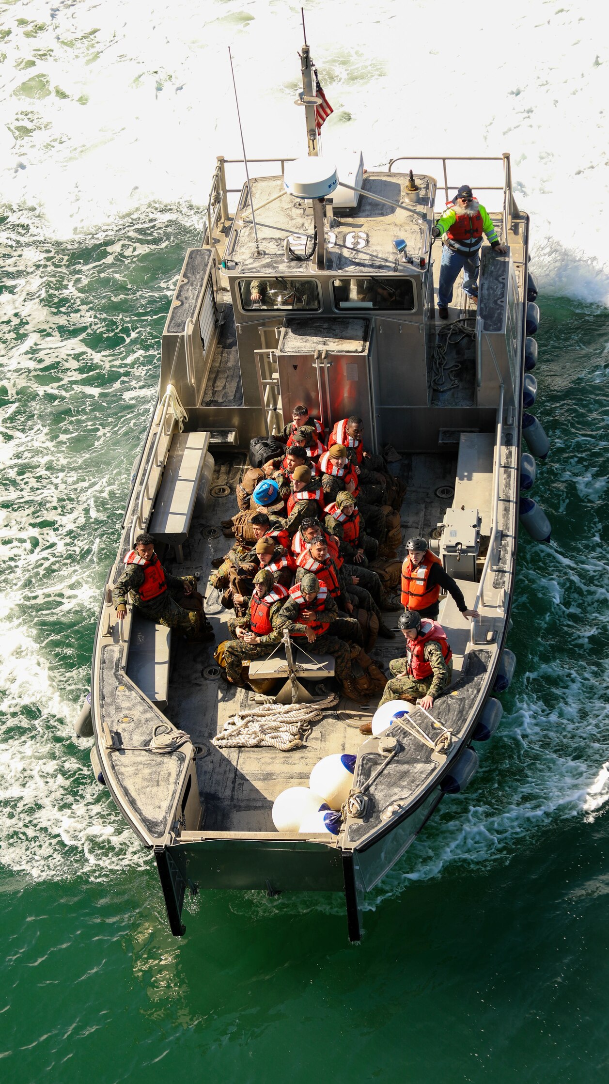 JACKSONVILLE, Fla. (March 15, 2022) U.S. Marines with 3rd Marine Logistics Group ride a utility boat during exercise Atlantic Dragon on Marine Corps Support Facility Blount Island, Florida, United States, March 15, 2022. Atlantic Dragon is a force generation exercise pushing Combat Logistics Regiment 37 as an arrival assembly operations group to provide tactical logistics support to III Marine Expeditionary Force. The exercise consists of an experimental maritime prepositioned force's offload tactics of military equipment that will support the field exercise training to increase combat readiness and efficiency. 3rd MLG, based out of Okinawa, Japan, is a forward-deployed combat unit that serves as III Marine Expeditionary Force's comprehensive logistics and combat service support backbone for operations throughout the Indo-Pacific area of responsibility. (U.S. Marine Corps photo by Cpl. Alpha Hernandez)
