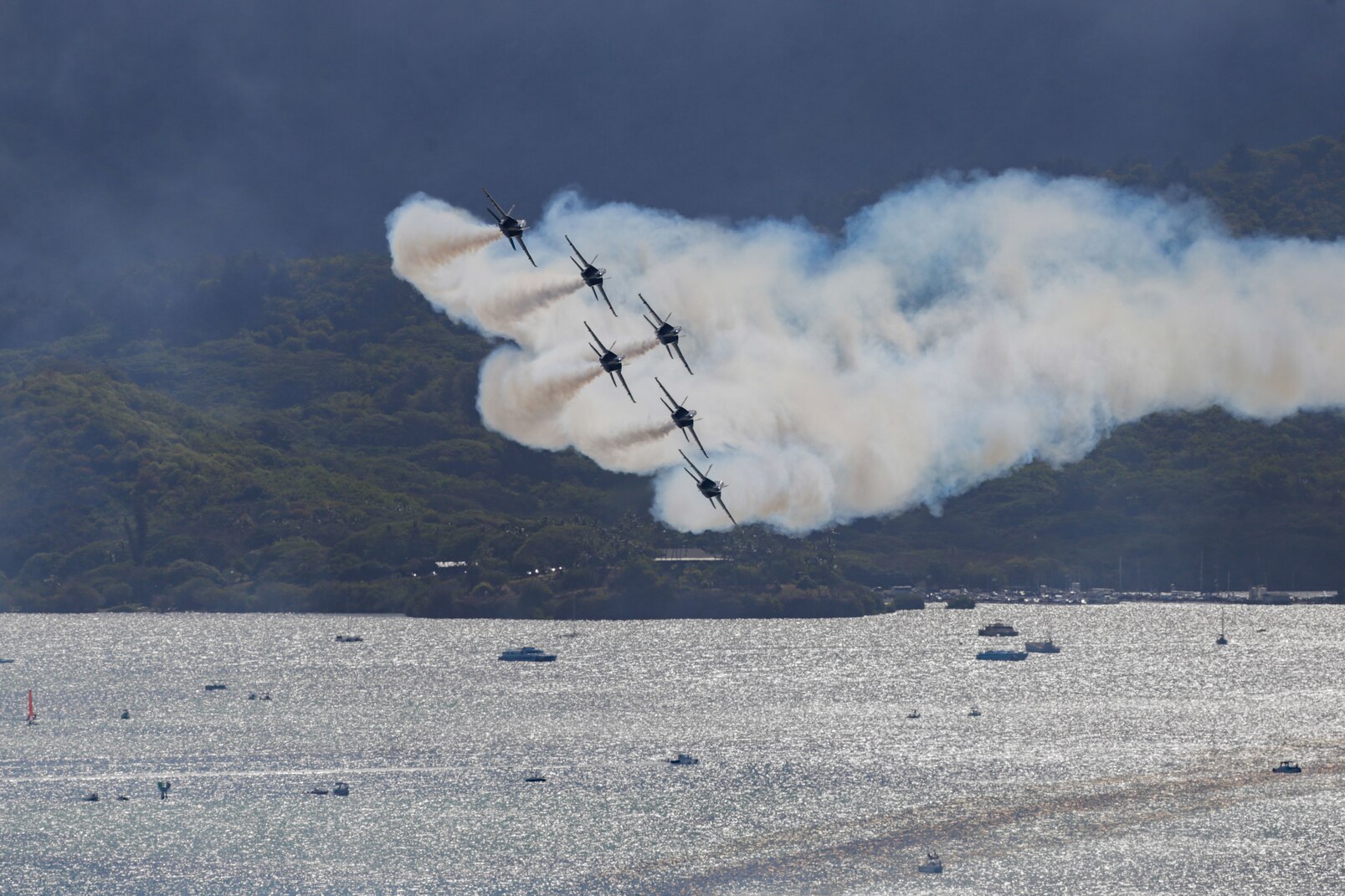 KANEOHE, Hawaii (Aug. 12, 2022) The U.S. Naval Flight Demonstration Squadron The Blue Angels perform flight demonstrations in F/A-18 Super Hornets as part of the 2022 Kaneohe Bay Air Show, Marine Corps Air Station Kaneohe Bay, Marine Corps Base Hawaii. The air show provided an opportunity to demonstrate the capabilities of a Joint Force in the Indo-Pacific Region. The Kaneohe Bay Air Show, which contained aerial performances, static displays, demonstrations and vendors, was designed to celebrate MCBH’s longstanding relationship with the local community. (U.S. Marine Corps photos by Lance Corporal Terry Stennett III)