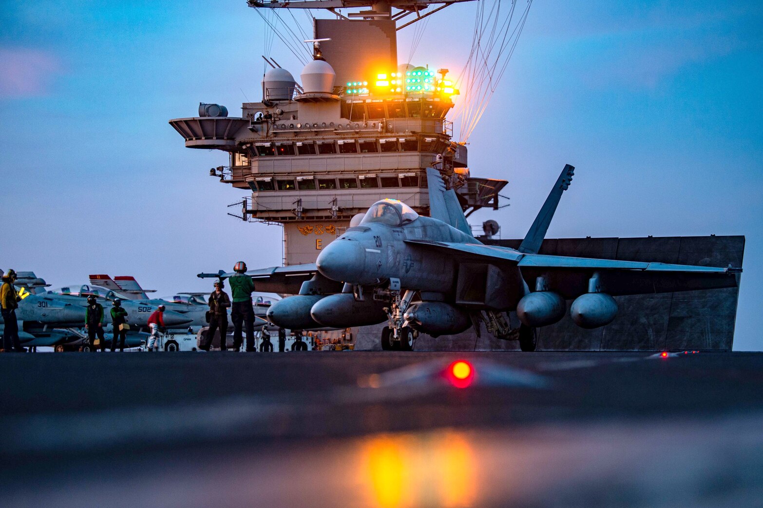 MEDITERRANEAN SEA (Aug. 24, 2022) An F/A-18E Super Hornet attached to the "Fighting Checkmates" of Strike Fighter Squadron (VFA) 211 prepares to launch from the flight deck of the Nimitz-class aircraft carrier USS Harry S. Truman (CVN 75), Aug. 24, 2022. The Harry S. Truman Carrier Strike Group is on a scheduled deployment in the U.S. Naval Forces Europe area of operations, employed by U.S. 6th Fleet to defend U.S., allied and partner interests. (U.S. Navy photo by Mass Communication Specialist 3rd Class Jack Hoppe)
