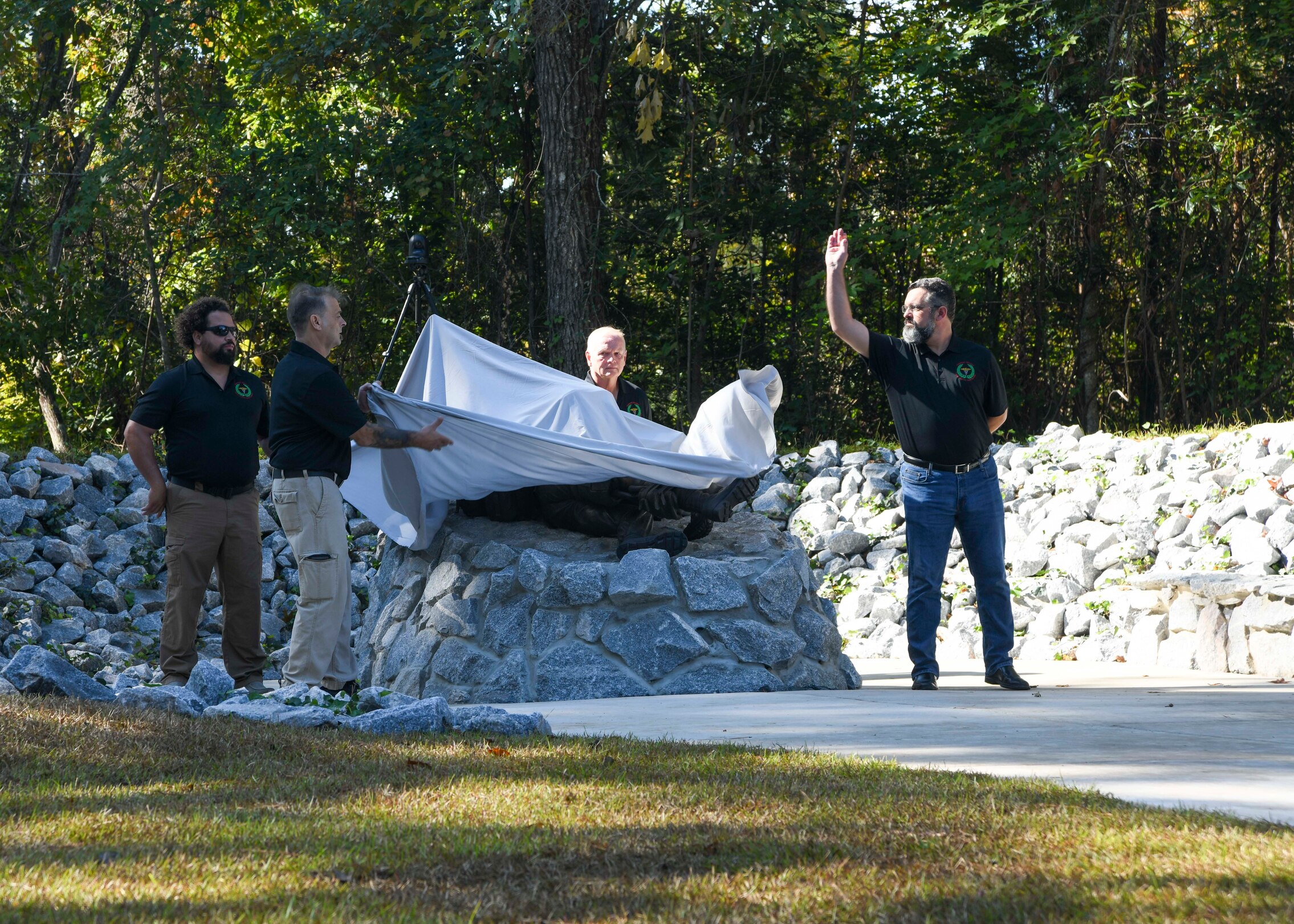 JACKSONVILLE, N.C. (Oct. 12, 2022) The Corpsmen Memorial is unveiled to the public on October 12, 2022. The statue, situated in Lejeune Memorial Gardens in Jacksonville, North Carolina, pays tribute to the heroism and sacrifices of Navy corpsmen. (U.S. Navy photo by Mass Communication Specialist 2nd Class Michael Molina)