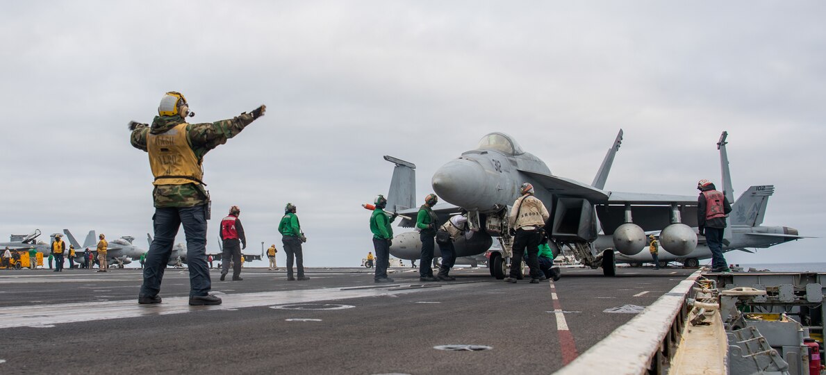 PACIFIC OCEAN (Oct. 14, 2022) An F/A-18E Super Hornet, from the "Kestrels" of Strike Fighter Squadron (VFA) 137, taxis on the flight deck of the aircraft carrier USS Nimitz (CVN 68). Nimitz Strike Group is underway preparing for an upcoming deployment. (U.S. Navy photo by Mass Communication Specialist 2nd Class Justin McTaggart)
