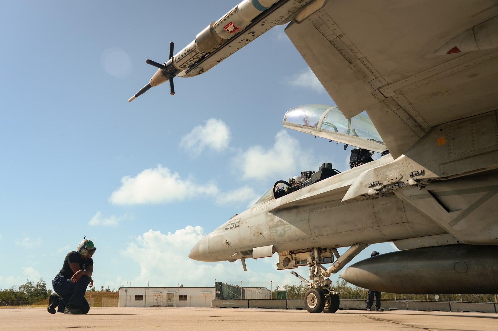 KEY WEST, Fla. (Nov 30, 2022) Aviation Structural Mechanic 2nd Class Antonio Robledo performs preflight checks on an F/A-18 Super Hornet attached to the "Gladiators" of Strike Fighter Squadron (VFA) 106 on Boca Chica Field in Key West, Fla. Nov. 30, 2022. Naval Air Station Key West is the state-of-the-art facility for combat fighter aircraft of all military services, provides world-class pierside support to U.S. and foreign naval vessels, and is the premier training center for surface and subsurface military operations. (U.S. Navy photo by Mass Communication Specialist 2nd Class Nicholas V. Huynh)