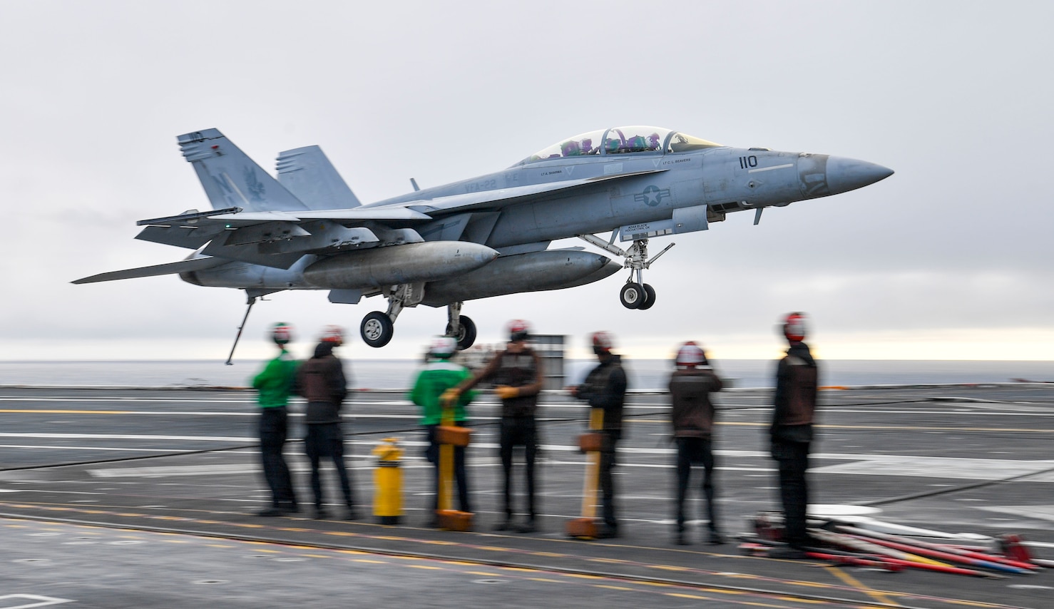 PACIFIC OCEAN (Dec. 4, 2022) An F/A-18F Super Hornet, from the “Fighting Redcocks” of Strike Fighter Squadron (VFA) 22, makes an arrested gear landing aboard the aircraft carrier USS Nimitz (CVN 68). Nimitz is underway conducting routine operations. (U.S. Navy photo by Mass Communication Specialist 2nd Class Justin McTaggart)
