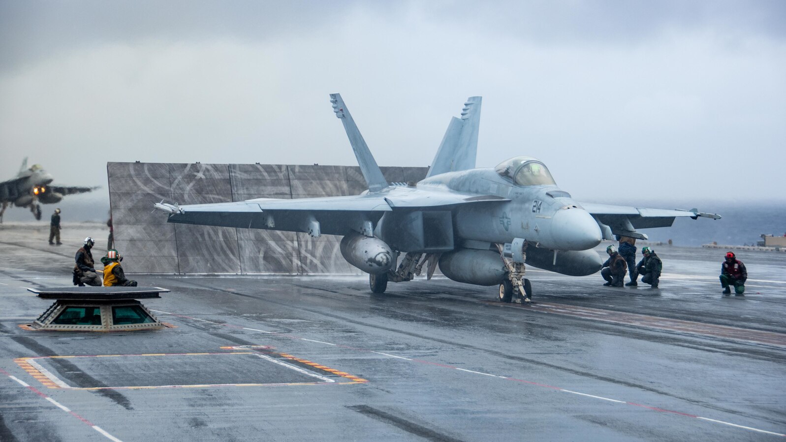 PHILIPPINE SEA (Dec. 6, 2022) An F/A-18E Super Hornet, attached to the Royal Maces of Strike Fighter Squadron (VFA) 27, prepares for launch on the flight deck of the U.S. Navy’s only forward-deployed aircraft carrier, USS Ronald Reagan (CVN 76), in the Philippine Sea. The Royal Maces conduct carrier-based air strikes and strike force escort missions, as well as ship, battle group, and intelligence collection operations. Ronald Reagan, the flagship of Carrier Strike Group 5, provides a combat-ready force that protects and defends the United States, and supports Alliances, partnerships and collective maritime interests in the Indo-Pacific region. (U.S. Navy photo by Mass Communication Specialist 3rd Class Oswald Felix Jr.)