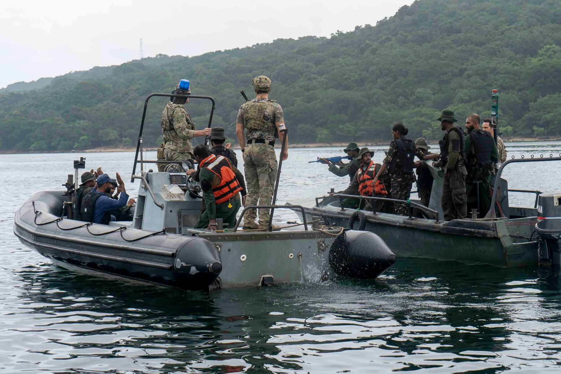TRICOMALEE, Sri Lanka (Jan. 23, 2023) Naval Special Warfare (NSW) operators and Sri Lanka navy sailors conduct a small boat interdiction exercise during Cooperation Afloat Readiness and Training (CARAT)/Marine Exercise (MAREX) Sri Lanka 2023 in Tricomalee. CARAT/MAREX Sri Lanka is a bilateral exercise between Sri Lanka and the United States designed to promote regional security cooperation, practice humanitarian assistance and disaster relief, and strengthen maritime understanding, partnerships, and interoperability. In its 28th year, the CARAT series is comprised of multinational exercises, designed to enhance U.S. and partner forces’ abilities to operate together in response to traditional and non-traditional maritime security challenges in the Indo-Pacific region. NSW is the nation's premier maritime special operations force and is uniquely positioned to extend the Fleets reach and deliver all-domain options for naval and joint force commanders. Task Force 73 is responsible for conducting diving and salvage operations in the Western Pacific. (U.S. Navy photo by Mass Communication Specialist 1st Class Brandon Parker)