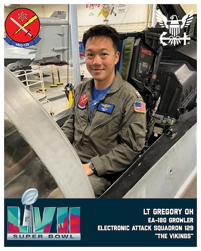 WASHINGTON (Jan. 26, 2023) A trading card of Lt. Gregory Oh for the flyover of Super Bowl LVII. (U.S. Navy graphic by Mass Communication Specialist 2nd Class Kyle Moore)