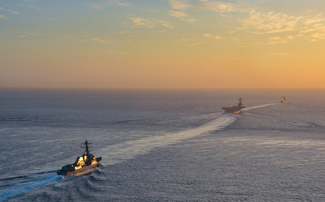 STRAIT OF GIBRALTAR (Oct. 28, 2023) The Dwight D. Eisenhower Carrier Strike Group transits the Strait of Gibraltar, Oct. 28, 2023. The Dwight D. Eisenhower Carrier Strike Group is on a scheduled deployment to provide the national command authority flexible, tailorable, warfighting capability to maintain maritime stability and to ensure access, deter aggression and defend U.S., allied and partner interests. (U.S. Navy photo by Mass Communication Specialist 2nd Class Merissa Daley)