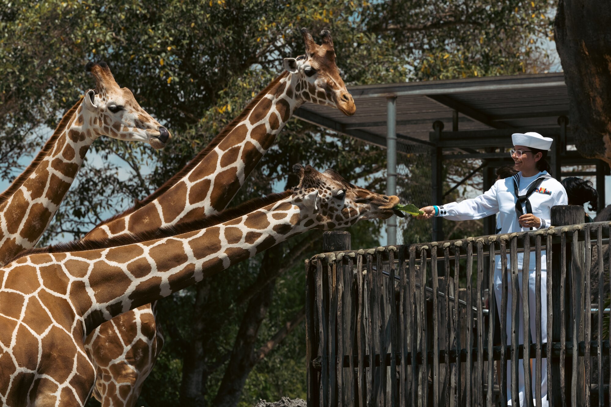 MIAMI (May 11, 2024) Culinary Specialist Seaman Apprentice Kiana Avila, from Colorado Springs, Colorado, feeds a giraffe at Zoo Miami during Fleet Week Miami, May 11, 2024. Fleet Weeks are a tradition of the U.S. Navy, Marine Corps, and Coast Guard, where major U.S. cities host Marines, Sailors, and Coast Guardsmen for one week of community-wide events. Fleet Week Miami, in its first year, is an opportunity for residents and visitors to meet with service members, foster community relationships, and view the latest capabilities of today�s maritime services. (U.S. Navy photo by Mass Communication Specialist Seaman Jasmin L. Aquino)