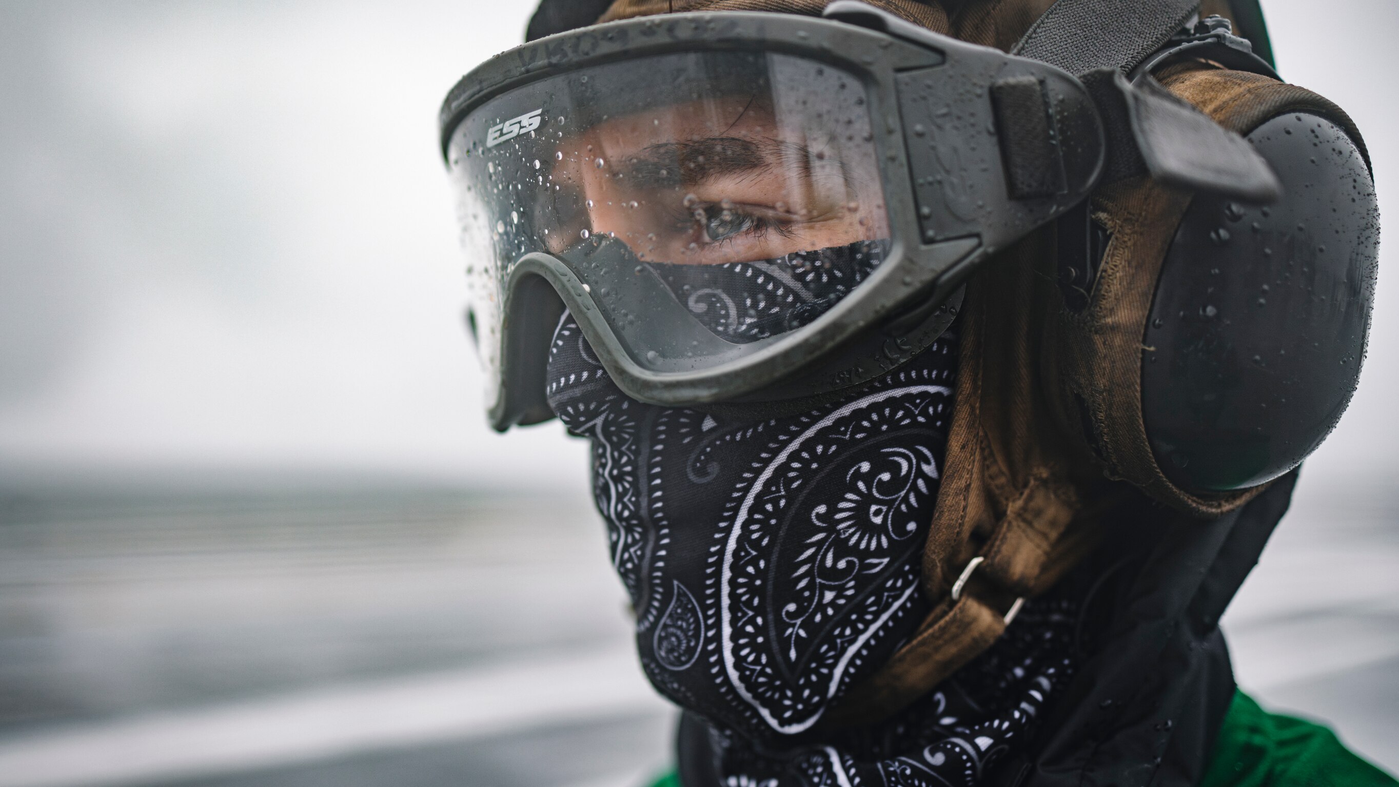 ATLANTIC OCEAN (May 11, 2024) Aviation Boatswain�s Mate Launch/Recovery (Equipment) Airman Ryan Bowden from Windham, Maine, assigned to air department�s V-2 division, stands by to recover aircraft during rainy flight operations on Nimitz-class aircraft carrier USS George Washington (CVN 73) in the Atlantic Ocean, May 11, 2024. George Washington is deployed as part of Southern Seas 2024 which seeks to enhance capability, improve interoperability, and strengthen maritime partnerships with countries throughout the U.S. Southern Command area of responsibility through joint, multinational and interagency exchanges and cooperation. (U.S. Navy photo by Mass Communication Specialist 3rd Class August Clawson)