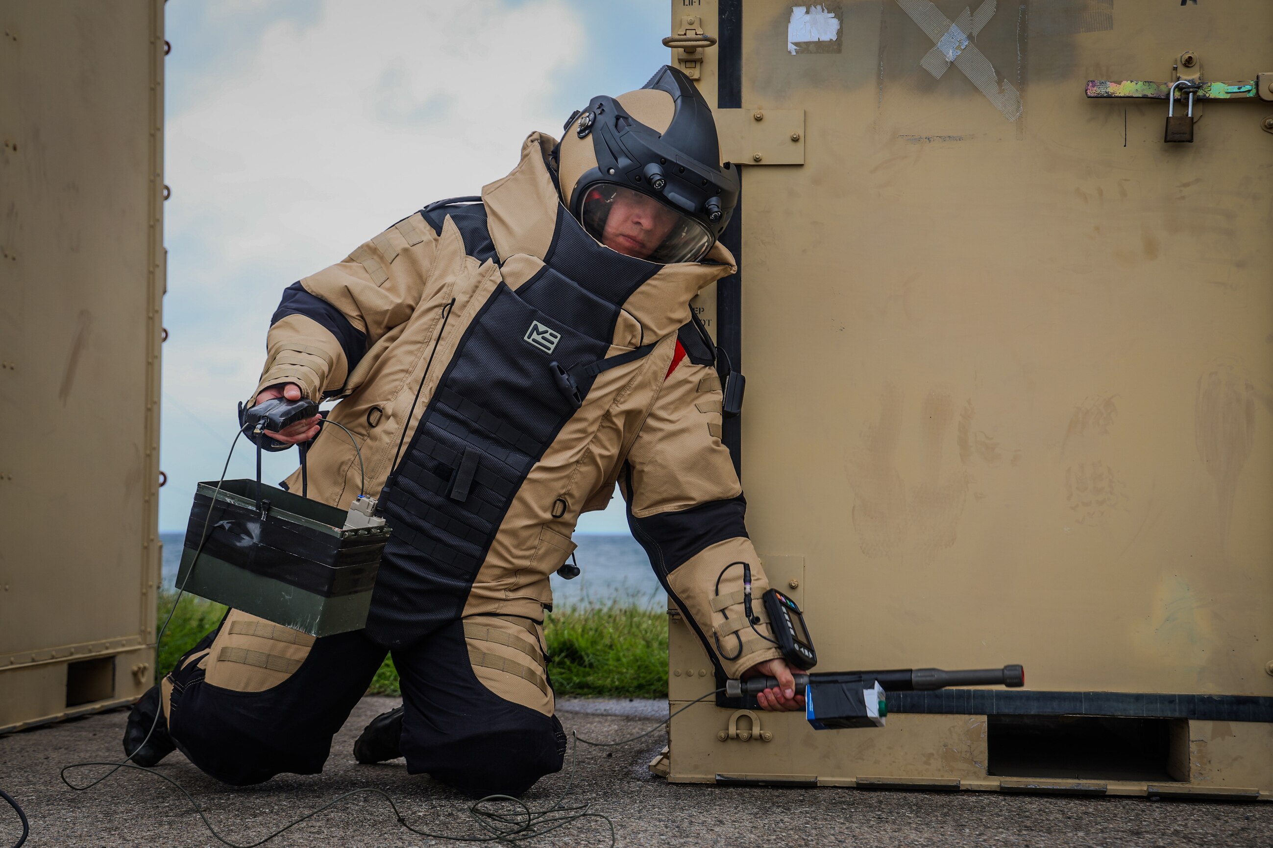 PUTLOS, Germany (June 11, 2024) U.S. Navy explosive ordnance disposal (EOD) technicians assigned to Explosive Ordnance Disposal Mobile Unit (EODMU) 2 and Royal Netherlands Navy maritime EOD technicians share knowledge on render safe techniques for improvised explosive devices (IEDs) in support of Baltic Operations (BALTOPS) 24, Putlos, Germany, June 11, 2024. BALTOPS 24 is the premier maritime-focused exercise in the Baltic region. The exercise, led by U.S. Naval Forces Europe-Africa and executed by Naval Striking and Support Forces NATO, provides a unique training opportunity to strengthen combined response capabilities critical to preserving freedom of navigation and security in the Baltic Sea. (U.S. Navy Photo by Mass Communication Specialist 2nd Class Jackson Adkins)