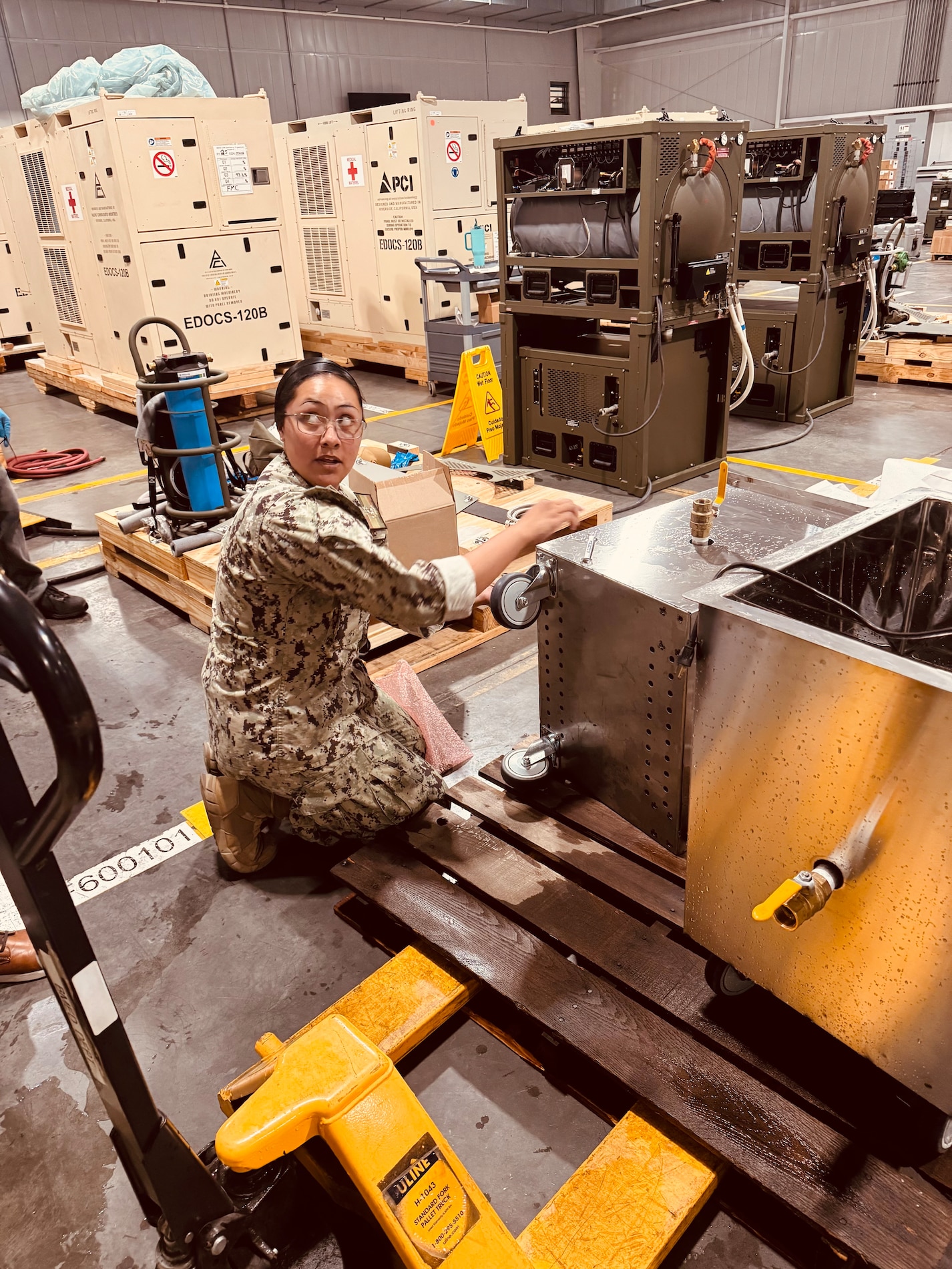 HM2 Nive Hamilton, an NMRLC Biomedical Technician, works on one of two Ultrasonic Portable Washers that were transported to Naval Hospital Guantanamo Bay, Cuba, Sept. 19. Navy Medicine commands and partners responded to an urgent request to deliver critical equipment and expertise on short notice.