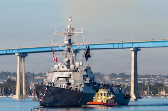 251219-N-NS989-1011 NAVAL BASE SAN DIEGO (Dec. 19, 2025) USS Lenah Sutcliffe Higbee (DDG 123), assigned to the Nimitz Carrier Strike Group, returns to its homeport of Naval Base San Diego following operations in the U.S. 3rd, 5th and 7th Fleets. An integral part of the U.S. Pacific Fleet, U.S. 3rd Fleet leads naval forces in the Indo-Pacific and provides the realistic, relevant training necessary to execute the U.S. Navy's role across the full spectrum of military operations. U.S. 3rd Fleet works together with allies and partners to advance freedom of navigation and overflight, the rule of law and other principles that underpin security for the Indo-Pacific region. (U.S. Navy photo by Gunner’s Mate 2nd Class Timothy Weber.)