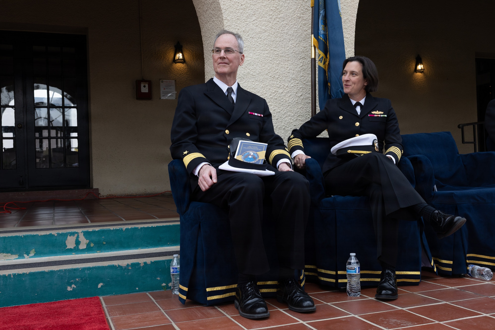 U.S. Navy Rear Adm. John Robinson III, Navy Chief of Information, and Capt. Sarah Self-Kyler, the commanding officer of Navy Public Affairs Command, attend the establishment of command ceremony for Fleet Public Affairs Center San Diego, Jan. 21, 2026. Fleet Public Affairs Center San Diego provides operational public affairs support to current and emerging public affairs and visual information engagements. (U.S. Navy Photo by Mass Communication Specialist 1st Class Charles J. Scudella III)