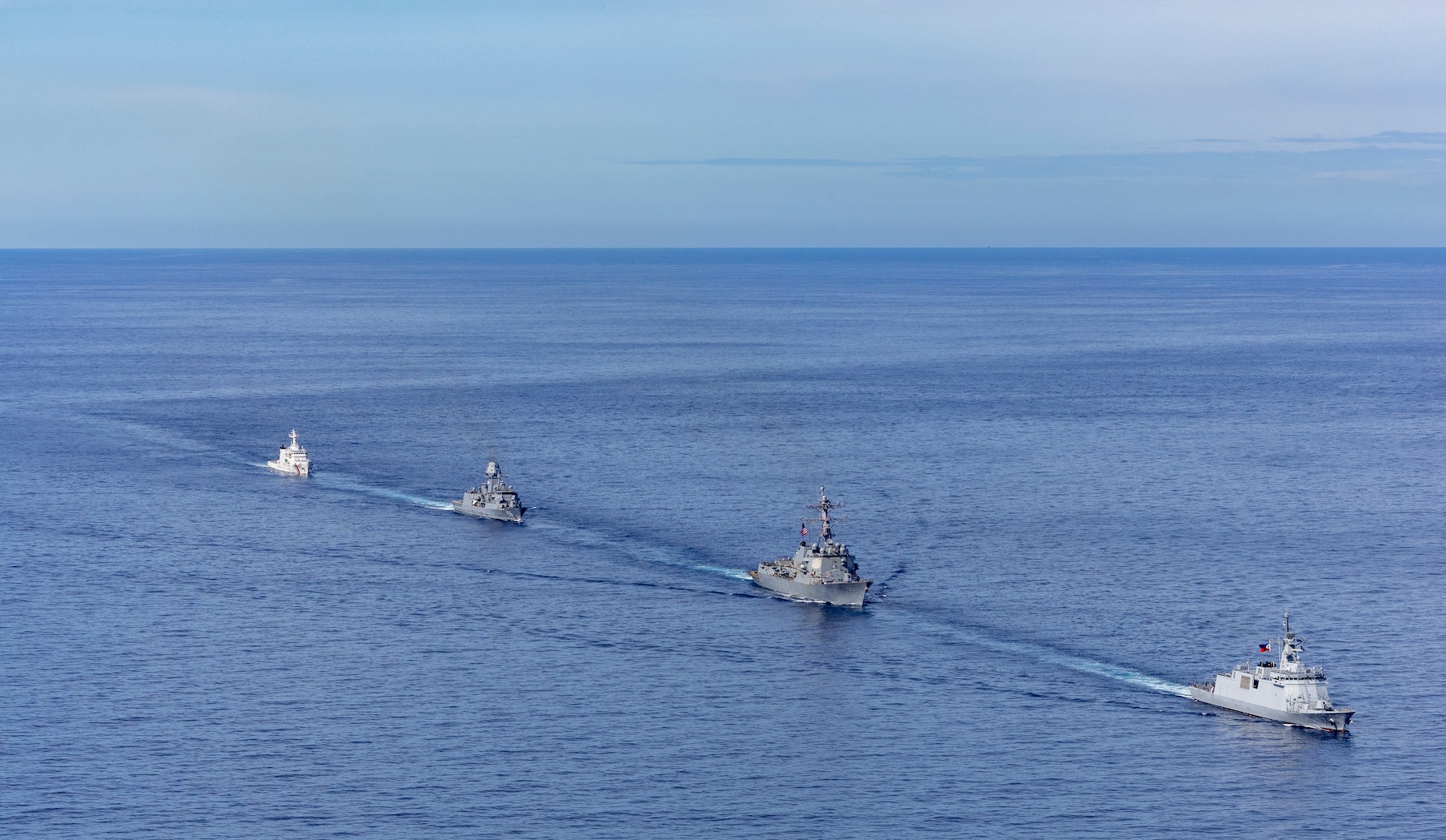 From left, Philippine Coast Guard Teresa Magbanua-class patrol vessel BRP Teresa Magbanua (MRRV 9701), Royal Australian Navy Anzac-class frigate HMAS Toowoomba (FFH 156), U.S. Navy Arleigh Burke-class guided-missile destroyer USS Dewey (DDG 105) and Philippine Navy Jose Miguel Malvar-class guided-missile frigate BRP Diego Silang (FFG 07) sail in formation during the Maritime Cooperative Activity (MCA) in the Philippines' Exclusive Economic Zone, Feb. 16, 2026. The U.S. Navy routinely operates with the Armed Forces of the Philippines and partners and allies through MCAs to continually develop, exercise and enhance multi-domain tactical interoperability to uphold peace and security in the region. Dewey is forward-deployed and assigned to Destroyer Squadron (DESRON) 15, the Navy’s largest DESRON and the U.S. 7th Fleet’s principal surface force. (U.S. Navy photo by Mass Communication Specialist 2nd Class Oscar Diaz)