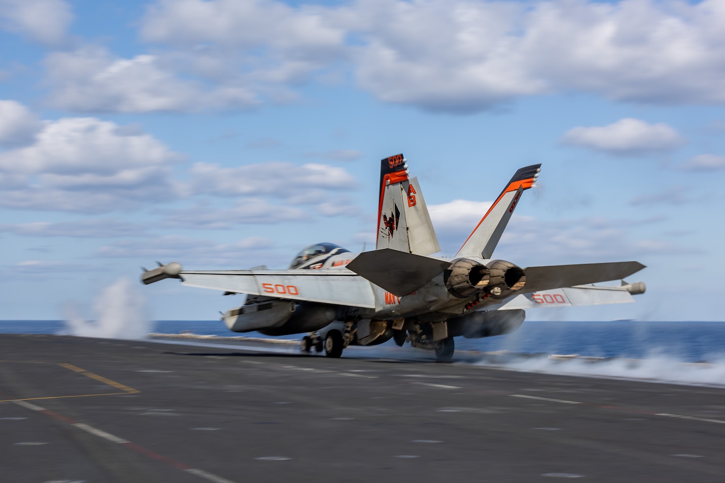 250224-N-SW048-1023 MEDITERRANEAN SEA (Feb. 24, 2025) An E/A-18G Growler, attached to the “Main Battery” of Electronic Attack Squadron (VAQ) 144, launches from the flight deck of the Nimitz-class aircraft carrier USS Harry S. Truman (CVN 75) Feb. 24. USS Harry S. Truman, the flagship of the Harry S. Truman Carrier Strike Group (HSTCSG), is on a scheduled deployment in the U.S. 6th Fleet area of operations supporting U.S. Naval Forces Europe-Africa to defend U.S., Allied and partner interests. (U.S. Navy photo by Mass Communication Specialist 2nd Class Logan McGuire)