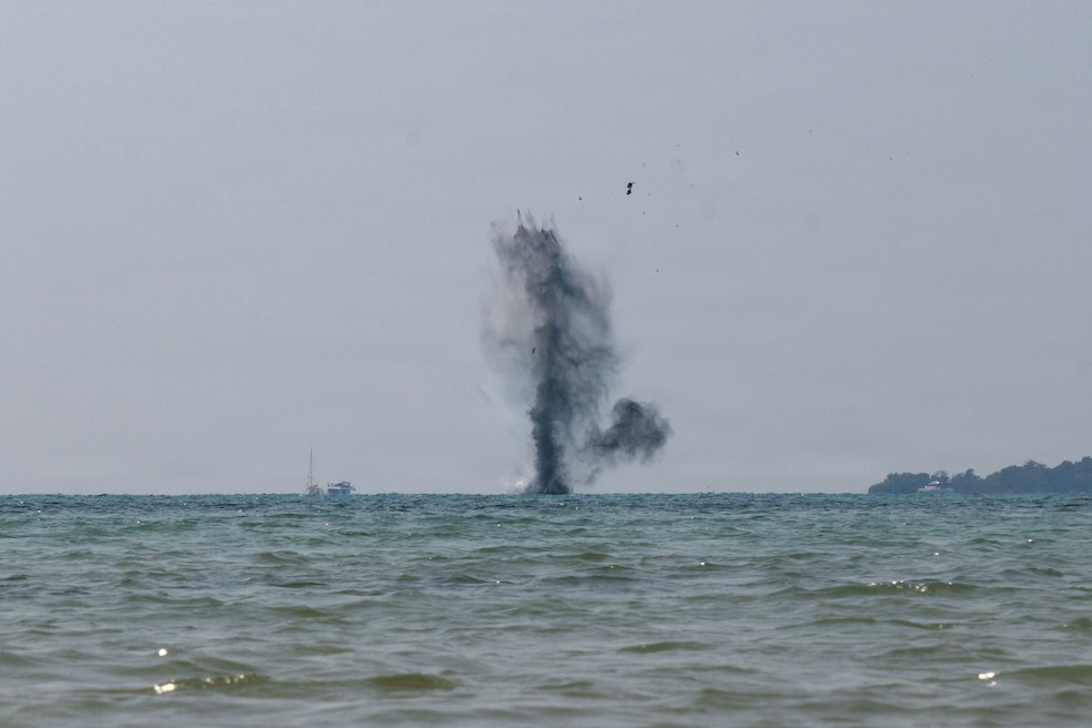 SATTAHIP, Thailand (Feb. 26, 2026) - A successful floating mine response operation conducted by U.S. Navy and Royal Thai Navy Explosive Ordnance Disposal technicians occurs during Joint Exercise Cobra Gold 2026 in Sattahip, Thailand, Feb. 26, 2026. The U.S. and Thailand are co- hosting the 45th annual Cobra Gold 2026, bringing in 8,000 troops from 30 nations together to participate in military training and humanitarian civic assistance projects in Thailand from Feb. 24 to Mar. 6, 2026. Cobra Gold 2026 strengthens how allies and partners work together and demonstrate U.S. commitment to regional security within the Indo- Pacific. (U.S. Navy photo by Natasha Ninete)