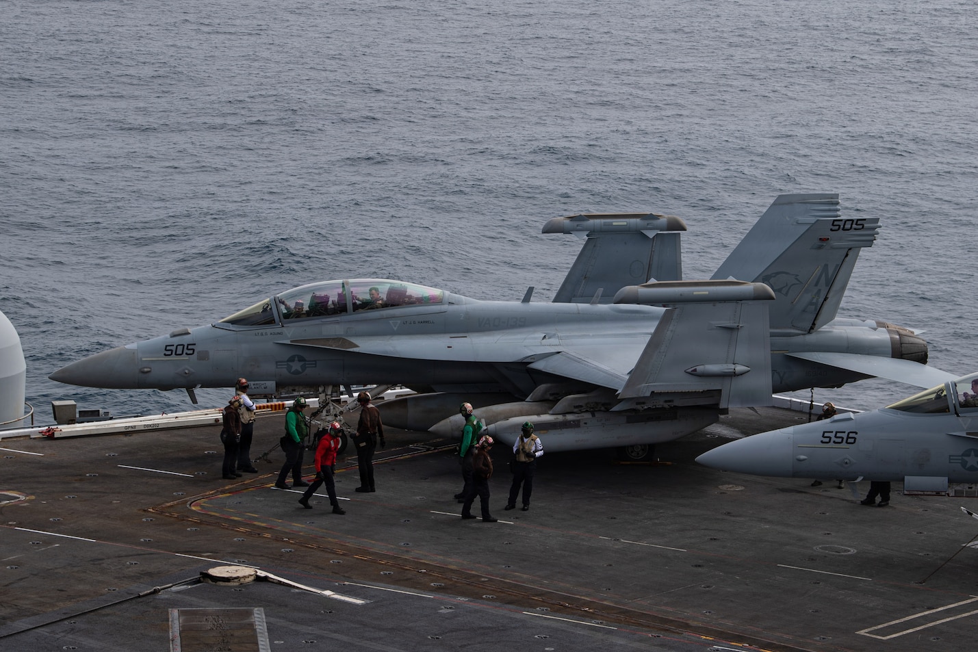 U.S. Sailors conduct flight operations on the flight deck of Nimitz-class aircraft carrier USS Nimitz (CVN 68) in the Pacific Ocean, March 14, 2026. Nimitz is underway in the U.S. 3rd Fleet area of operations as part of a scheduled homeport shift to Norfolk, Virginia. (U.S. Navy Photo by Mass Communication Specialist Seaman Tanner Orth)