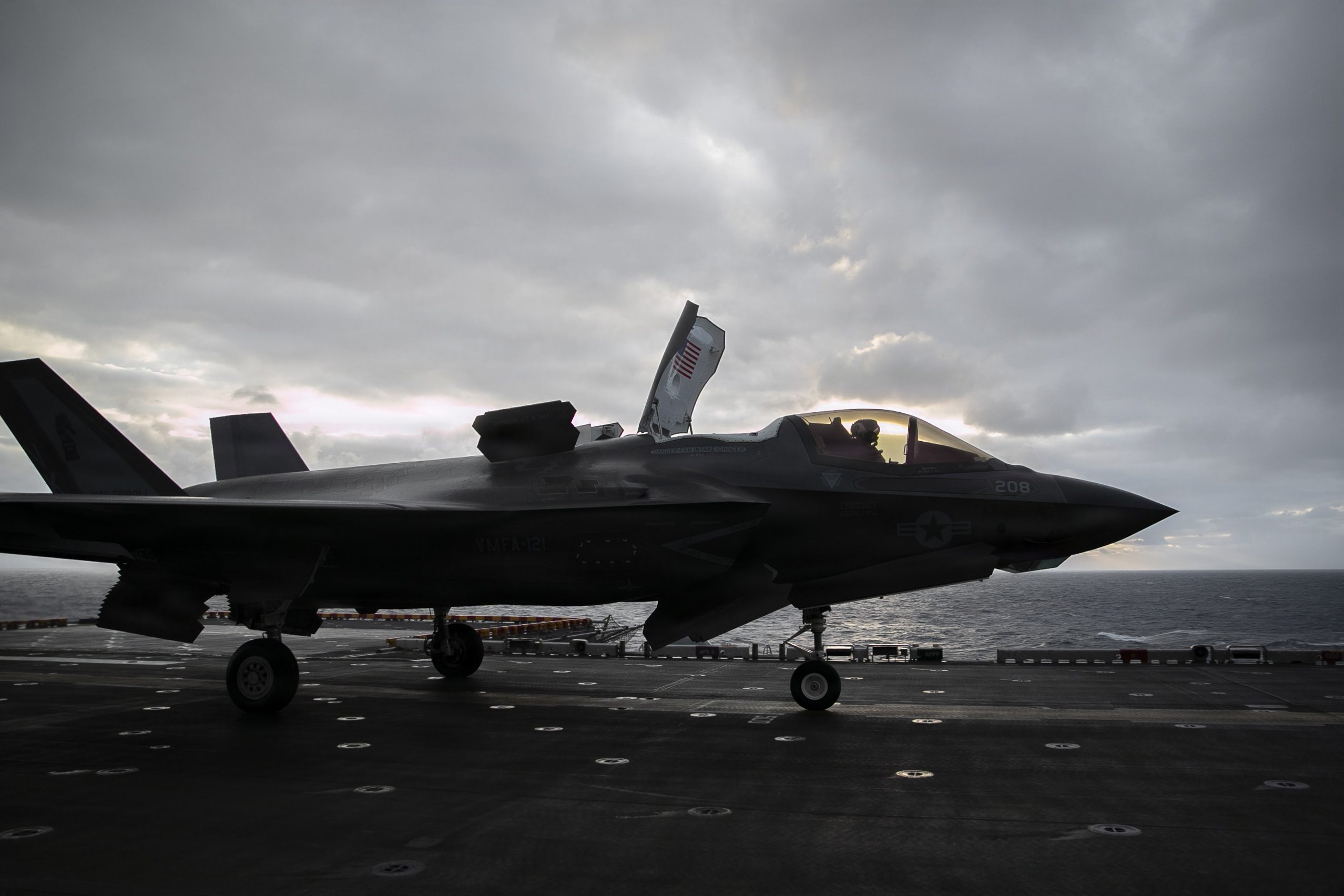 An F-35B Lighting II, attached to Marine Fighter Attack Squadron (VMFA) 121, take off from the flight deck of America-class amphibious assault ship USS Tripoli (LHA 7), Mar. 3, 2026. Tripoli is currently underway conducting routine operations in the U.S. 7th Fleet area of operations. U.S. 7th Fleet, is the U.S. Navy’s largest forward-deployed numbered fleet, routinely interacts and operates with allies and partners in preserving a free and open Indo-Pacific. (U.S. Navy photo by Mass Communication Specialist Seaman Apprentice Reese Mitchell Taylor)