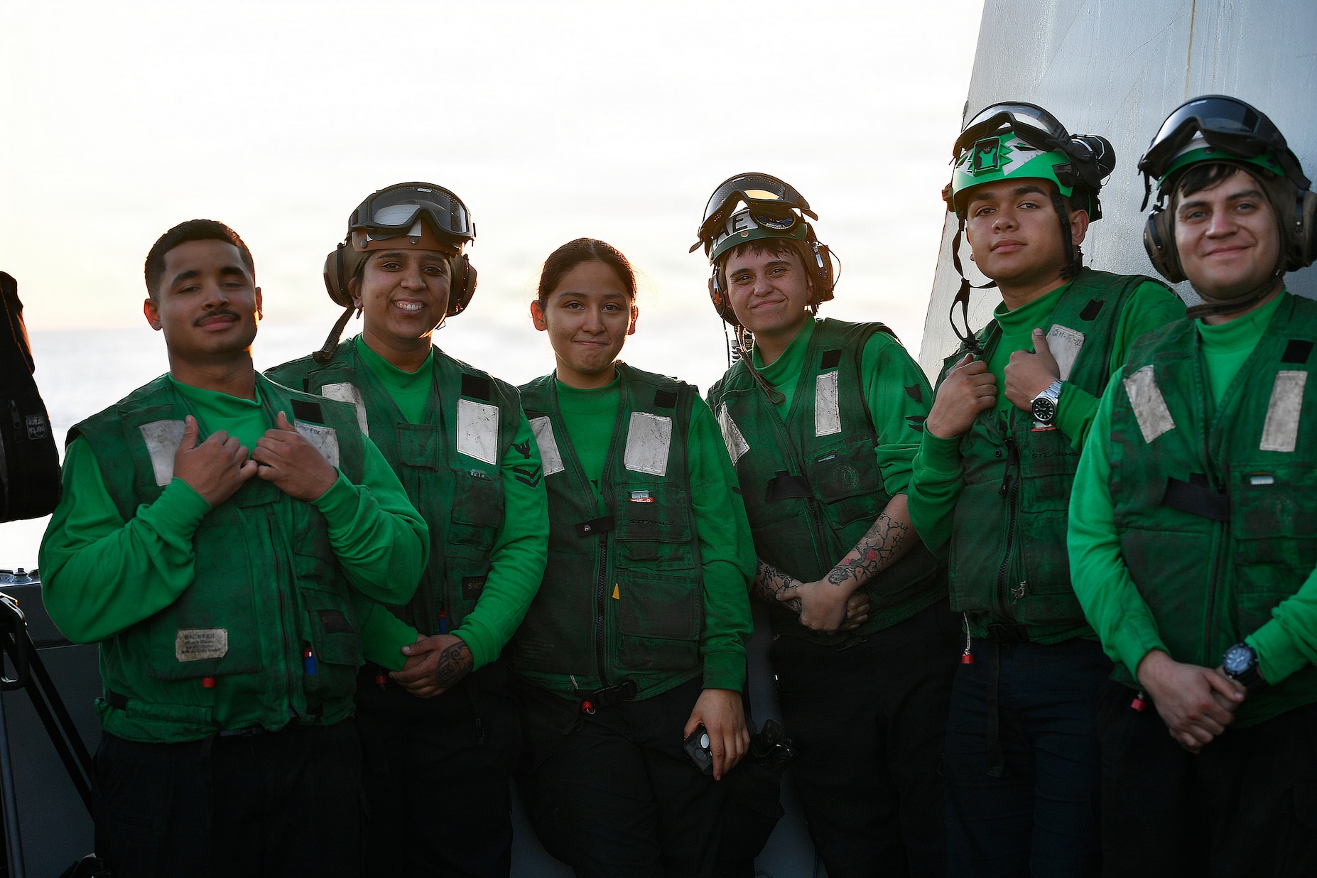 Sailors assigned to Helicopter Sea Combat Squadron (HSC) 23 gather to view the return of Artemis II astronauts aboard amphibious transport dock ship USS John P. Murtha (LPD 26), April 10, 2026. John P. Murtha is underway in the U.S. 3rd Fleet area of operations supporting NASA’s Artemis II mission, retrieving the crew and spacecraft following their return to Earth and splashdown in the Pacific Ocean. NASA’s Artemis II mission sent four astronauts on a flight around the moon in the Orion space capsule, marking the first time humans journeyed to deep space in over 50 years. (U.S. Navy photo by Lt. Drew Verbis)